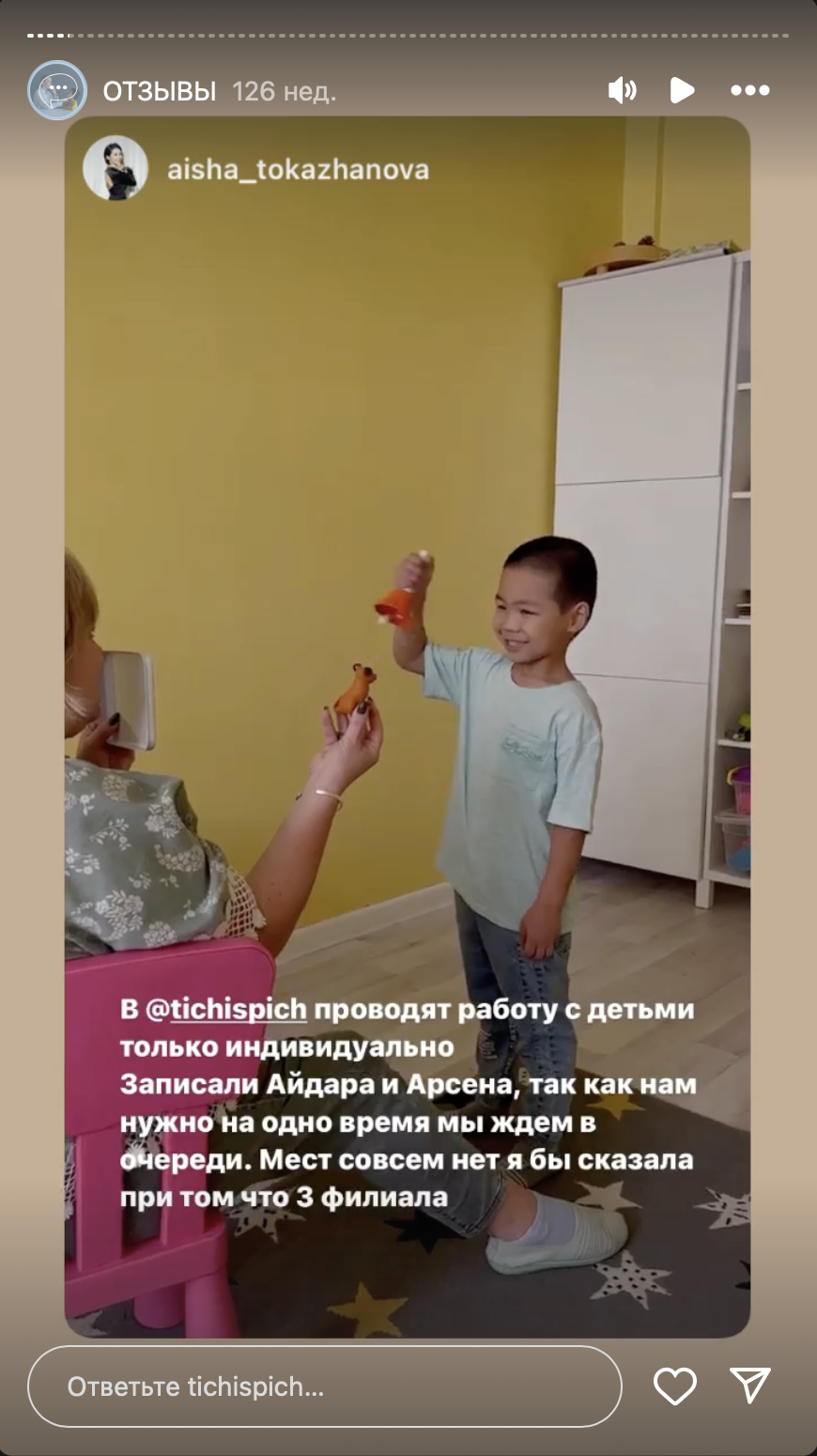Сөйлеу дамуының кешігуі бар балаларға көмектесу. Сабақтар сөйлеуді дамытуға, дикцияны жақсартуға және сөздік қорын арттыруға бағытталған.